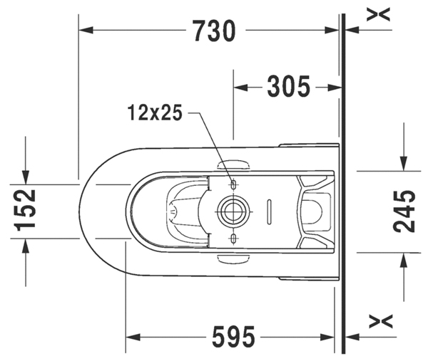无缝冲水, 美式座便器, 加长型带虹吸喷头, 305 mm/12" 坑距, 垂直出水, 适用于 SensoWash® Starck